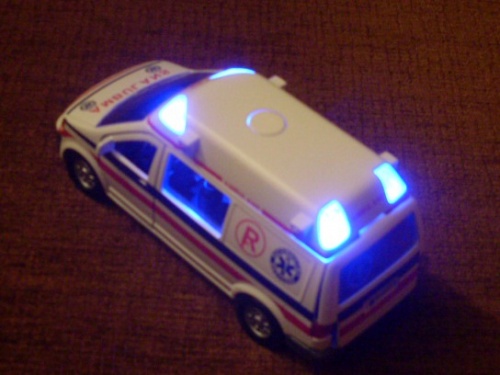 - Po włączeniu wóz policyjny zaczyna wydawać cztery rózne dźwięki charakterystyczne dla karetek pogotowia.