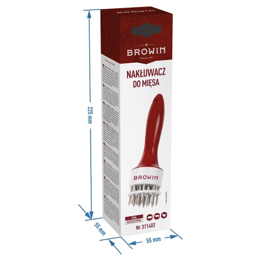 - Ergonomiczny kształt - umożliwia nakłuwanie mięsa bez użycia dużego nakładu siły.