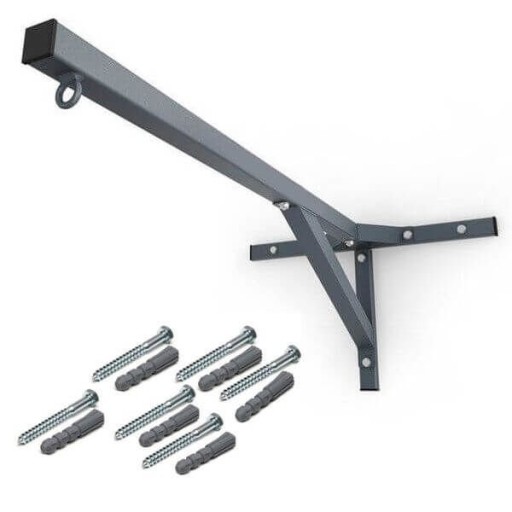 Właśnie dlatego mocowanie zostało wyposażone w uchwyt wykonany z wysokiej jakości prętu o grubości aż 12 mm. Rozwiązanie takie zapewnia wieloletnią trwałość nawet podczas bardzo intensywnego użytkowania. Całe mocowanie zostało pomalowane metodą proszkową zapewniającą odporność przyrządu na wszelkie warunki atmosferyczne oraz zabezpieczające mocowanie przed odpryskiwaniem farby podczas użytkowania. Parametry techniczne: Długość ramienia: 108 cm Profil: 50x50 mm0 Wytrzymałość: do 350 kg Malowanie: proszkowe Gwarancja: 24 miesięcy Gratis: Kołki montażowe + karabińczyk 8 m (Uwaga kołki montażowe powinno dobrać się do rodzaju i jakości powierzchni montażowej )