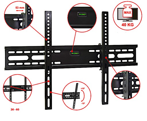 UCHWYT DO TELEWIZORA od 26 - 60'' - Wytrzymałość do 40kg + Poziomica