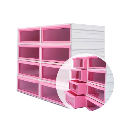 Zestaw zawiera 10 szufladek modułowych w pastelowych kolorach wysuwających się z białych obudów