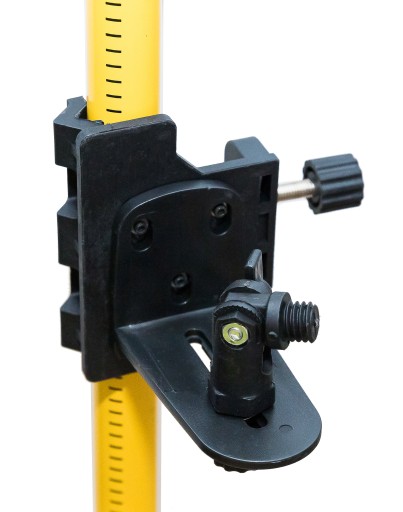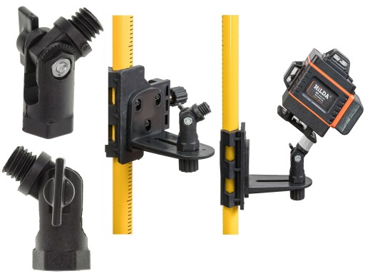 Dzięki temu adapterowi możemy zamontować naszą poziomicę na półce tyczki lub statywie pod różnym kątem. Nadaje się bardzo dobrze do pracy poziomicy ze skosami.
