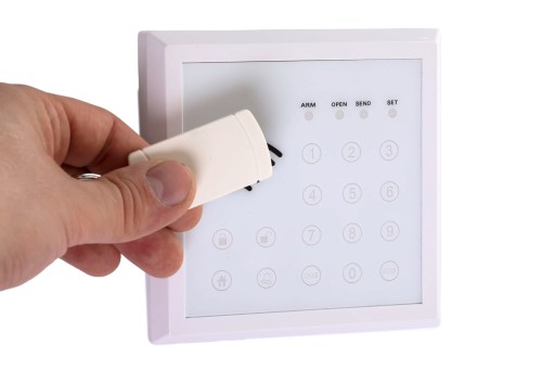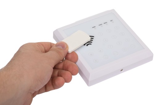 Można też rozbroić alarm przystawiając pastylkę RFID w odpowiednie miejsce na klawiaturze.