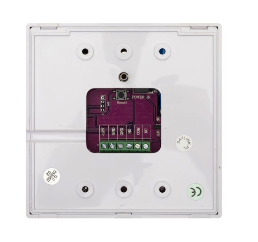Klawiatura wyposażona jest w przycisk antysabotażowy. Przy próbie nieuprawnionego zdjęcia klawiatury ze ściany przycisk tamper zostaje zwolniony a klawiatura wyśle sygnał do centralki.