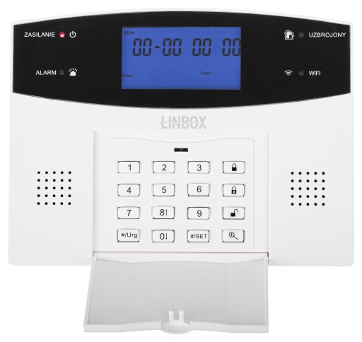 - Centrala alarmowa zawierająca moduł GSM900/1800MHz z wbudowanym akumulatorem i komunikatami w języku polskim