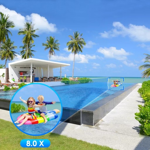Dzięki 8-krotnemu zbliżeniu dostrzeżesz znajdujące się w oddali przedmioty lub osoby.