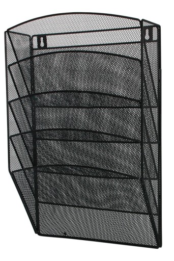 - zestaw metalowych półek na dokumenty, korespondencję, czasopisma, wykonany z metalowej siateczki powlekanej lakierem