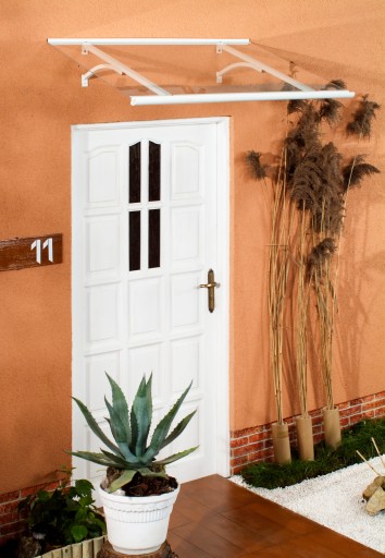 Zadaszenie w formie markizy na wspornikach aluminiowych, z uszczelką przyścienną chroniącą ścianę przed zaciekami, z rynną odpływową,