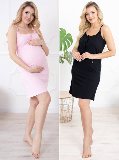 ZESTAW 2X KOSZULA NOCNA CIĄŻOWA NA RAMIĄCZKACH DO KARMIENIA ZAPINANA NA NAPY CZARNA I RÓŻOWA