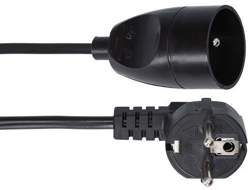 Przedłużacz pojedynczy z uziemieniem w kolorze czarnym.