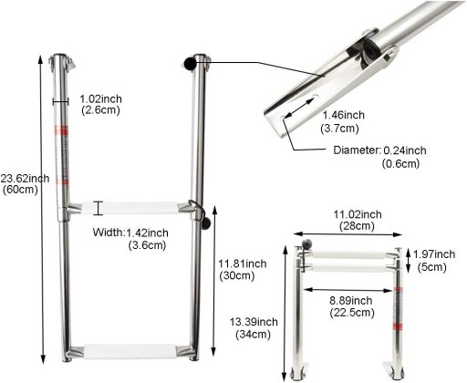 Wysokiej jakości rozkładana - dwustopniowa drabinka, wykonana ze stali nierdzewnej ( polerowanej ) A4 do jachtu, łodzi lub motorówki.