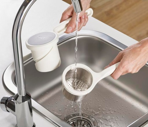 Praska JOSEPH JOSEPH Helix to ergonomiczna prasa do żywności, która jest łatwa w użyciu. Produkt idealny do przygotowywania puree. W przeciwieństwie do pras pionowych, Praska JOSEPH JOSEPH Helix naciska poziomo za pomocą mechanizmu obrotowego. Moc pochodzi z łopatki i jest optymalnie wykorzystywana do przeciskania ziemniaków, buraków, dyń itp. 2-częściowa prasa wykonana jest ze stali nierdzewnej i nylonu. Obie części można myć w zmywarce i dlatego są łatwe do czyszczenia.