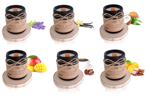 CANDLE-BOX KOMPLETNY ZESTAW DO WYROBU ŚWIEC SOJOWYCH Z NATURALYMI DREWNIANYMI PODSTAWKAMI, ZAWIERA 27 ELEMENTÓW