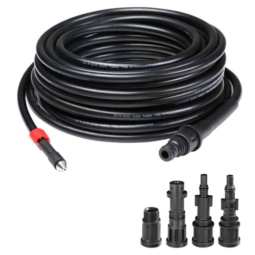 Do szybkiego i łatwego czyszczenia np. zatkanych lub brudnych rur, odpływów, rynien deszczowych i toalet, a także kostki brukowej, mycia narzędzi ogrodowych, mebli ogrodowych, mycia motocykli i samochodów. Odpowiedni do dostępnych na rynku myjek wysokociśnieniowych, zawiera adaptery różnych znanych producentów marek. Elastyczny wąż do czyszczenia rur posiada praktyczną ochronę przed zagięciem, dzięki czemu woda nie jest w niej spiętrzana. Wąż jest wyjątkowo elastyczny i niezwykle zwrotny. Dodatkowy pierścień znakujący pokazuje postęp w rurze. Ciśnienie wstecznego strumienia automatycznie przepycha wąż przez rurę. Praktyczne akcesoria do skutecznego czyszczenia rur!