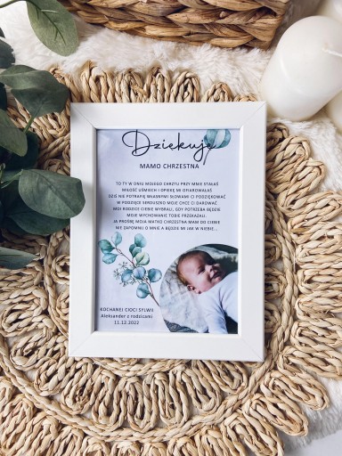 Rodzice Chrzestni pełnią ważną rolę w życiu Twojego dziecka. Podziękuj im za to w wyjątkowy sposób - podaruj im piękne podziękowania w formie ramek. Gwarantujemy zaskoczenie i wzruszenie.