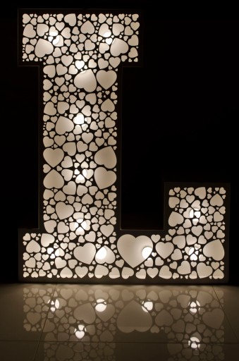 Napis LOVE z żarówkami, niby ten sam, a jednak całkiem inny, dzięki specjalnym, przepięknym ażurowym dekoracjom! Czego oko nie widzi, tego sercu nie żal! Lecz czy po zobaczeniu LOVE w serca lub kwiecistymi, góralskimi czy folkowymi dekoracjami można go nie pragnąć? Zachwyca oko i rozgrzewa serca! Na pozostałych naszych aukcjach znajdziesz ażury w różnych rozmiarach i stylach oraz inne okolicznościowe dekoracje jak na przykład podświetlaną MIŁOŚĆ, MR & MRS, SERCE, BAR, CYFRY, czy litery z taśmy aluminiowej, kasetony, znaki, semafory itp.