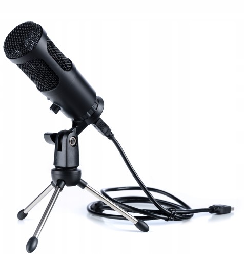 Mikrofon pojemnościowy na statywie. Mikrofon wykonany z najwyższej jakości materiałów, idealnie nadaje się do zastosowań amatorskich oraz komercyjnych. Statyw można zdemontować i trzymać mikrofon w ręce. Wprost stworzony do nauki zdalnej albo komunikacji w grach sieciowych. Dzięki swoim poręcznym rozmiarom jesteś w stanie go zabrać ze sobą w podróż albo wyjazd służbowy.