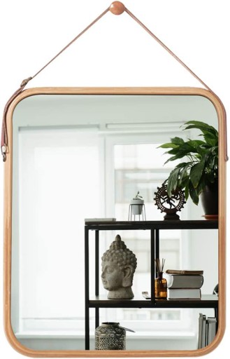 Skórzany, brązowy pasek nadaje elegancji i szykowności, dodatkowa gałka do zawieszenia lustra w kolorze ramy sprawia że całość stanowi spójną i ekstrawagancką jedność.