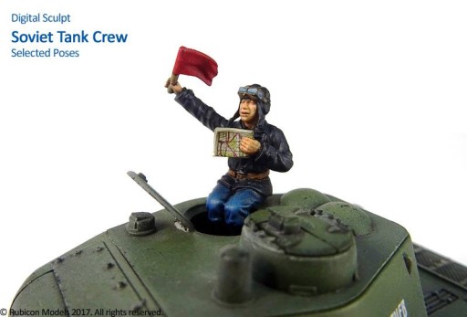Zestaw 4 plastikowych załóg radzieckich czołgów w różnych pozach do użytku z dowolnymi sowieckimi czołgami.