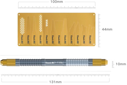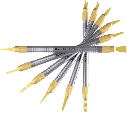 Zestaw dwustronnych elastycznych metalowych narzędzi ułatwiających lutowanie i czyszczenie płytek drukowanych z pozostałości cyny, kulek BGA, oraz kleju. Doskonale sprawdzają się przy separacji i podnoszeniu układów scalonych SMD i CPU z PCB.