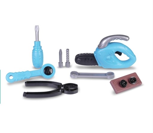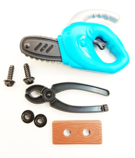Powagi i "dorosłości" w tym zestawie dodaje piłą (napęd manualny) dla małego majsterkowicza, która oprócz wiernie odwzorowanych detali idealnie leży w w małych i średnich rączkach.