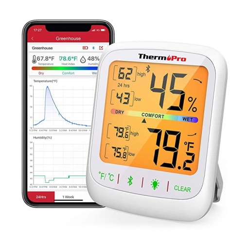 Czujnik temperatury i wilgotności ThermoPro TP-359 Bluetooth to urządzenie do użytku domowego, niezwykle proste i funkcjonalne które pozwoli monitorować warunki w domu regulując je do optymalnych. ThermoPro TP-359 charakteryzuje się dużym czytelny wyświetlaczem o przekątnej 3.5 cala.