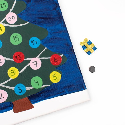 Przymocuj prezent- paczkę do tablicy, umieszczając magnes z tyłu, który następnie łączy się z magnesem na opakowaniu.