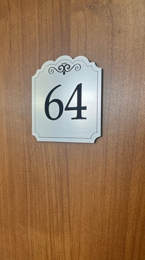 Na tej aukcji proponujemy wykonanie tabliczki z numerem na drzwi w kształcie widocznym na zdjęciu.