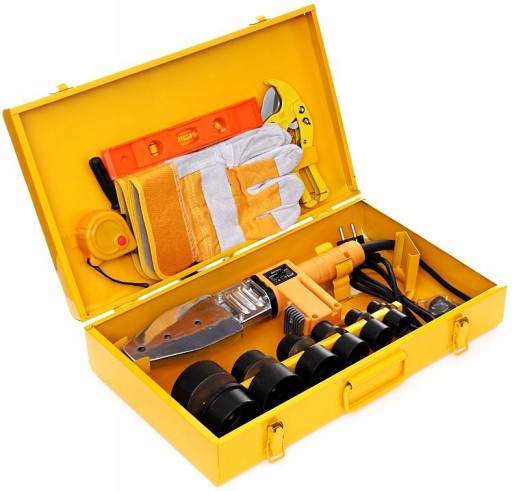 Do zestawu dołączonych jest 7 trzpieni i mufek grzewczych umożliwiających pracę z rurami i kształtkami o średnicach: 16, 20, 25, 32, 40, 50 oraz 63mm. Mufki pokryte są powłoką teflonową, co pozwala na uzyskanie jeszcze precyzyjniejszych połączeń
