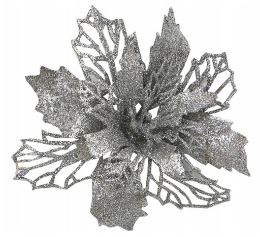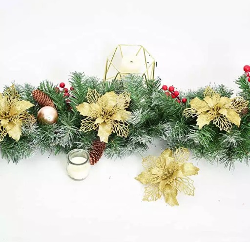 Świąteczne kwiaty zostały wykonane z elastycznego plastiku i ozdobione brokatem.