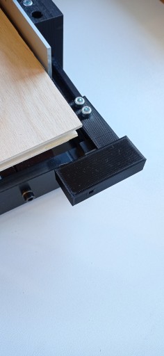 Obudowy wyłączników krańcowych osi X i Y posiadają wycięcie kwadratowe na przewód oraz wycięcie kwadratowe na tylnej ściance umożliwiające “wyciśnięcie” wyłącznika krańcowego po jego wciśnięciu w obudowę
