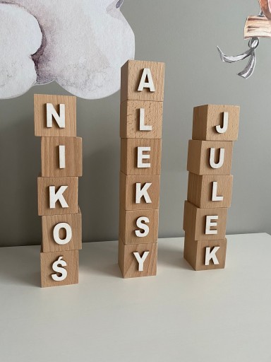 Nasze najpopularniejsze realizacje to bukowe klocki z białymi literkami.