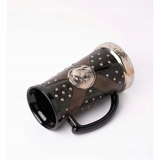 Ogromny kufel ceramiczny z serialu Wiedźmin, stylizowany na wiedźmińską zbroję. Zdobienia kufla są tłoczone i błyszczące, imitując srebrne ćwieki.