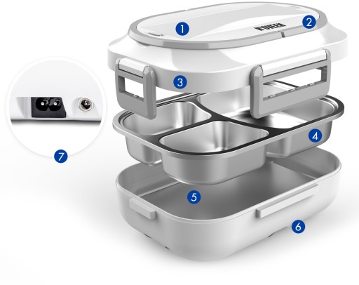 Urządzenie wyposażone jest w element grzewczy PTC, który umożliwia podgrzanie jedzenia do 60°C w ciągu 20 minut. Szczelnie zamknięcie umożliwia utrzymanie temperatury posiłku.