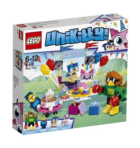 Przeżyj ponownie ulubione sceny z najbardziej radosnego, błyszczącego i kolorowego serialu telewizyjnego na antenie w zestawie LEGO® Unikitty™! 41453 Czas na imprezę. Znajdziesz w nim stanowisko DJ-a z gramofonami, głośnikami, balonami i flagami, obracający się parkiet ze światłami, prezenty dla gości i ogromny tort urodzinowy na wózku z kołami. W zestawie są także cztery postacie z serialu telewizyjnego do zbudowania, które pomogą Ci stworzyć imprezową atmosferę!