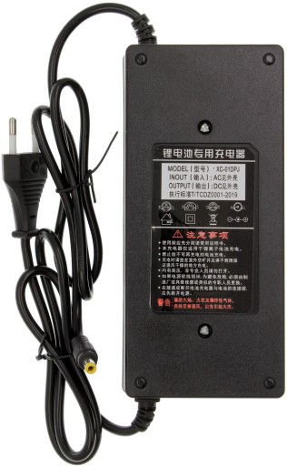 - Napięcie wyjściowe: DC 42V 3A (dla akumulatora / pakietu 10S 36V nominalne)