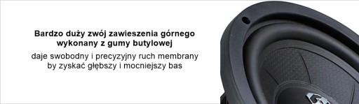 Ground Zero GZIW 300X zawiera to co szczególnie istotne: solidne zwoje zawieszenia (guma butylowa) dla precyzyjnych ruchów membrany, co ma swoje przełożenie w postaci lepszego, głębszego basu.