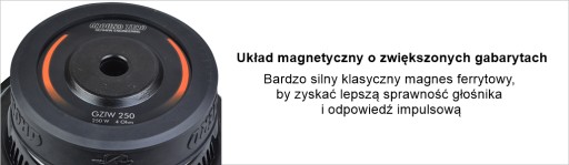 Subwoofery Ground Zero GZIW 300X wyróżniają się nowym wykończeniem. Stalowy wytłaczany kosz zabezpieczony w całości warstwą antyrezonansową. 2 calowa cewka bardzo dobrze rozpraszająca ciepło.