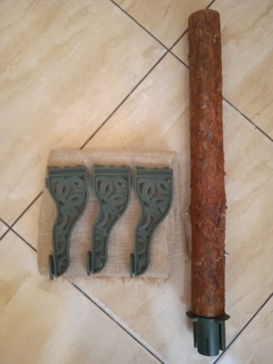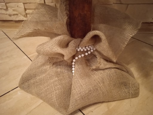 CHOINKA stoi na stojaku plastikowym owiniętym jutą