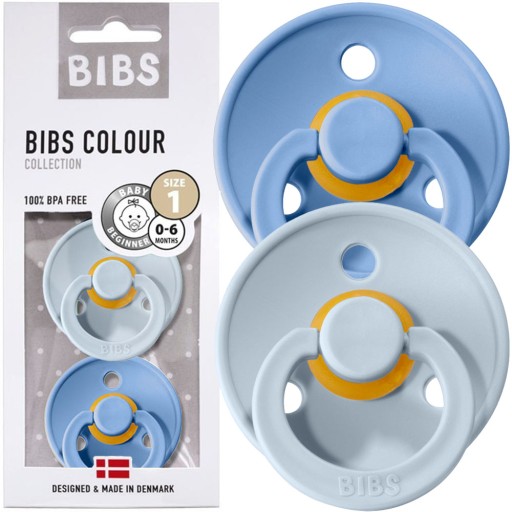 Zestaw dwóch smoczków marki Bibs - 2-Pack SKY BLUE & BABY BLUE w rozmiarze S
