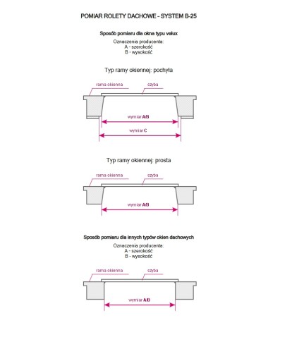 Na grafice obok wymiary A i B oznaczają odpowiednio wysokość i szerokość. Nie mierz szyby okna, tylko wymiar zgodny z rysunkiem obok.