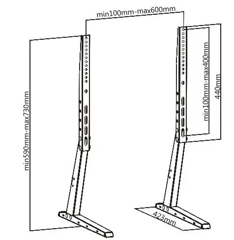 - możliwość regulacji wysokości telewizora: 590 mm - 730 mm