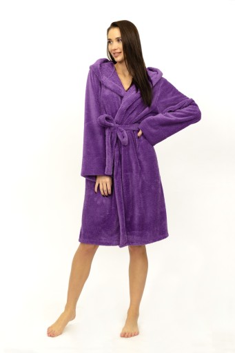 Komfortowy, miękki oraz bardzo ciepły szlafrok damski luna, stworzony z przyjemnego dla ciała materiału, w jednolitym kolorze fioletowym.