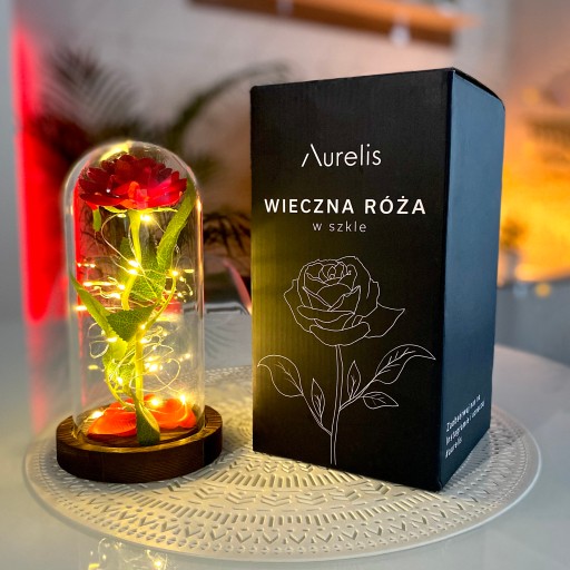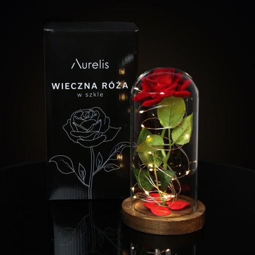Aurelis Wieczna Róża w Szkle PREZENT CZERWONA LED | PREZENT na WALENTYNKI