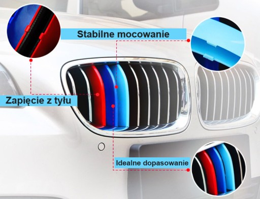 Nakładki pasują idealnie do oryginalnych nerek w BMW serii 3.