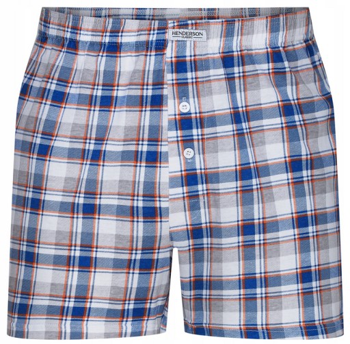 Klasyczne luźne bokserki HENDERSON Classic wykonane ze 100% bawełny zapewniają wygodę użytkowania i swobodę ruchów. Klasyczny krój z elastyczną talią i nogawkami sięgającymi do połowy uda. Szeroki wybór deseni i kolorowych kratek. Bokserki mają obszytą materiałem ukrytą gumę z naszywką z logo marki oraz rozporek na dwa guziki.