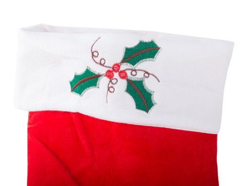 Oryginalna ozdobna skarpeta, nadająca świąteczny klimat każdemu domowi. Można w niej również schować cukierki, smakołyki i inne zabawki, ponieważ jest bardzo pojemna. Posiada tasiemkę dzięki której można ją zawiesić przy kominku, na drzwiach czy ścianie.