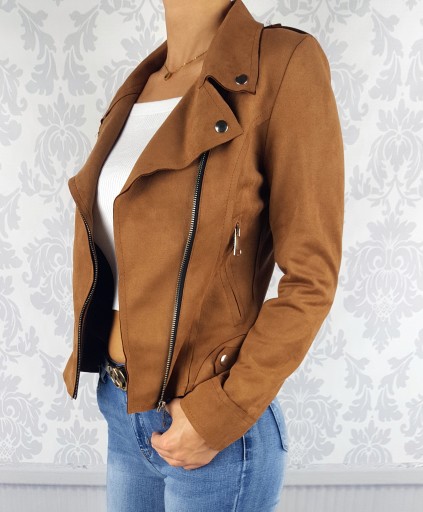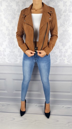 Klasyczna kurtka RAMONESKA. Model taliowany, sięgający do pasa. Uszyta z miękkiej i wysokiej jakości zamszu ekologicznego. Materiał miękki (nie jest sztywny). Zapinana jest na srebrny zamek . Po bokach dwie kieszonki zapinane na suwaki. Można ją wykorzystać w każdej stylizacji, zarówno do klasycznych jeansów i białego T-shirtu na codzienne wyjścia, jak i do kobiecych sukienek dodając im rockowego charakteru. Jest to zdecydowany must have w każdej garderobie!
