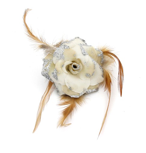 BROSZKA RÓŻYCZKA Z BROKATEM I PIÓRKAMI