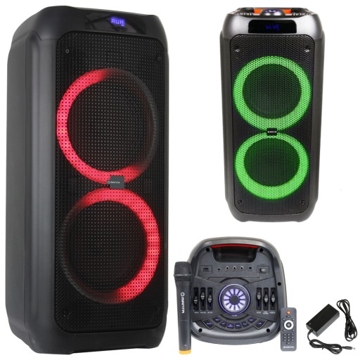 Podświetlenia membran woofer’ów sprawią, że poczujesz się jak na najprawdziwszym disco! Natomiast jeśli będziesz chciał posłuchać nastrojowej muzyki w zaciszu swojego pokoju, światła LED możesz po prostu wyłączyć. Dodatkowo oprócz bezprzewodowego mikrofonu, w komplecie z naszym głośnikiem znajdziesz pilot, którym wygodnie będziesz regulował głośność czy zmieniał utwory lub stacje radiowe.
